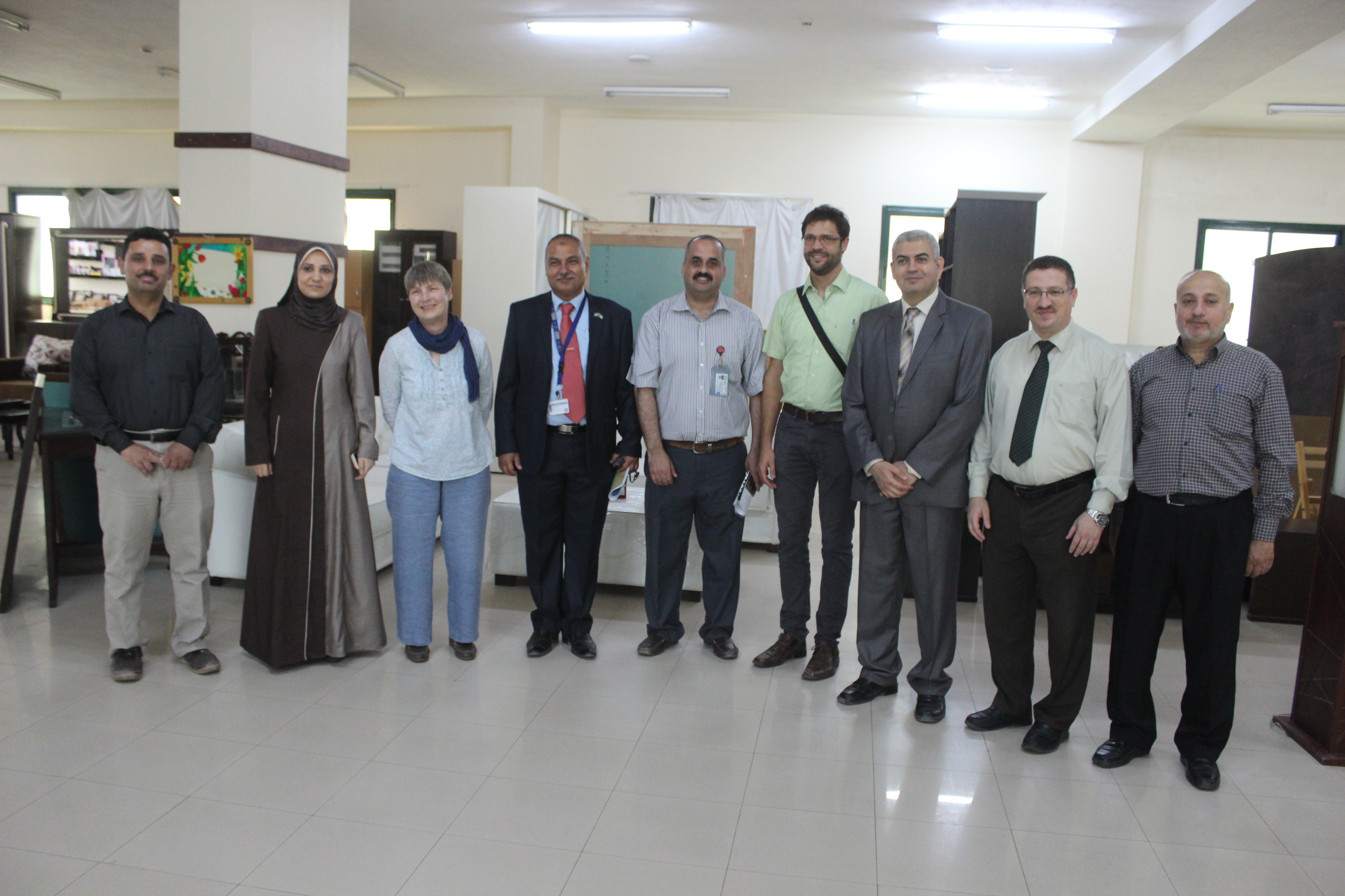 A delegation from the KFW Development Bank and United Nation Development Program Visits IRADA center at the Islamic University of Gaza. The delegation was headed by Ms. Cornelia Dinter, the Principle Country Manager North Africa & Middle East and Mr. Matthias Hahl, Senior Project Manager. They were accompanied by Mr. Hekmat Khairy, Deputy Head of Infrastructure Unit (Gaza), Mr.Salah Hammad the representative of UNDP/DEEP, and Mr.Ahmed Al Riyati from the United Nation Development Program (UNDP).