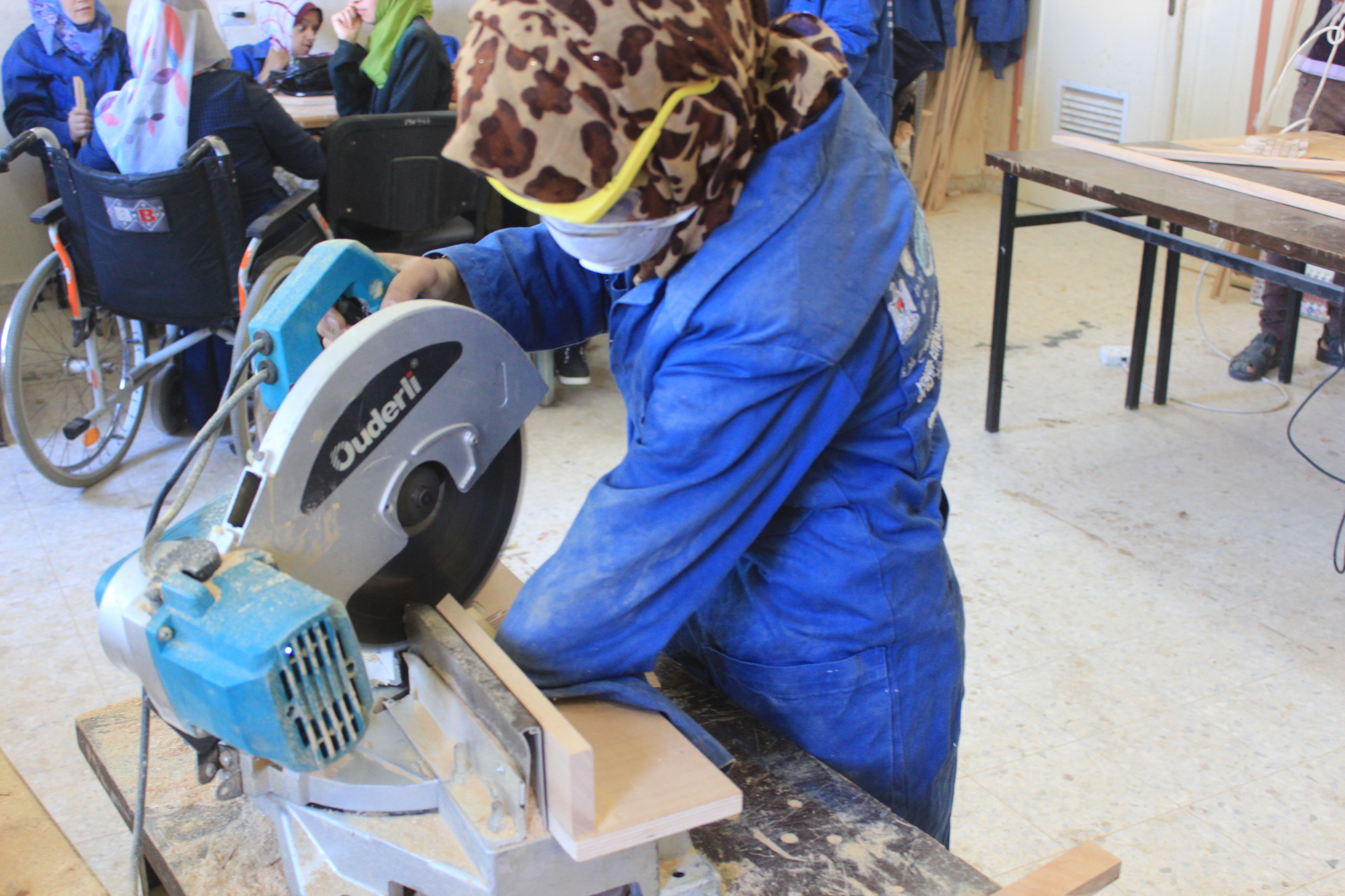Isra succeeded in training and proved, despite working with one hand that she is able to work in a tough profession like men. What is impressive is that Isra’s trainer “Ahmed Wael Zaloom” is also physically disabled and suffers from the amputation of a leg, have the strong will to become a trainer in this workshop in Irada. He was a wonderful model to Isra who planted in herself hope for a better tomorrow.