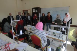 وجاءت الزيارة بهدف الإطلاع على المشاريع التي ينفذها مركز إرادة من جانب، وبحث سبل دعم فئة الشباب ذوي الإعاقة. وتعرف الوفد على قدرات وطاقات الشباب الذين يتم تدريبهم في المركز، والبرامج التدريبية المهنية التي استفاد منها أكثر من (1000) شخصاً من ذوي الإعاقة الحركية والسمعية منذ نشأة المركز في العام 2012، كما تم اطلاعهم على المشاريع التي تنفذ حالياً بالمركز والتي تقدم التدريب المهني للجرحى بهدف إعادة دمجهم وتأهيلهم للعمل، وزار الوفد ورشة النجارة، وورشة الخياطة، وورشة الطاقة الشمسية، وغيرها من الورشات المختصة بمتابعة الشباب وتشجيعهم، ومعرض منتجات “إرادة” الدائم “.