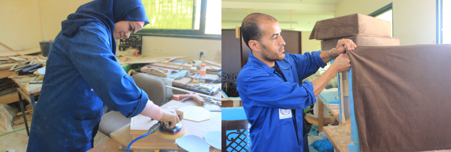 فاتن ورجائي،،، كلاهما لم ينتبه لقدومنا ودخولنا الورشة، فقد كان كل منهما منشغل بعمله وانجازه داخل ورشة برنامج إرادة للتأهيل والتدريب المهني للأشخاص ذوي الإعاقة.