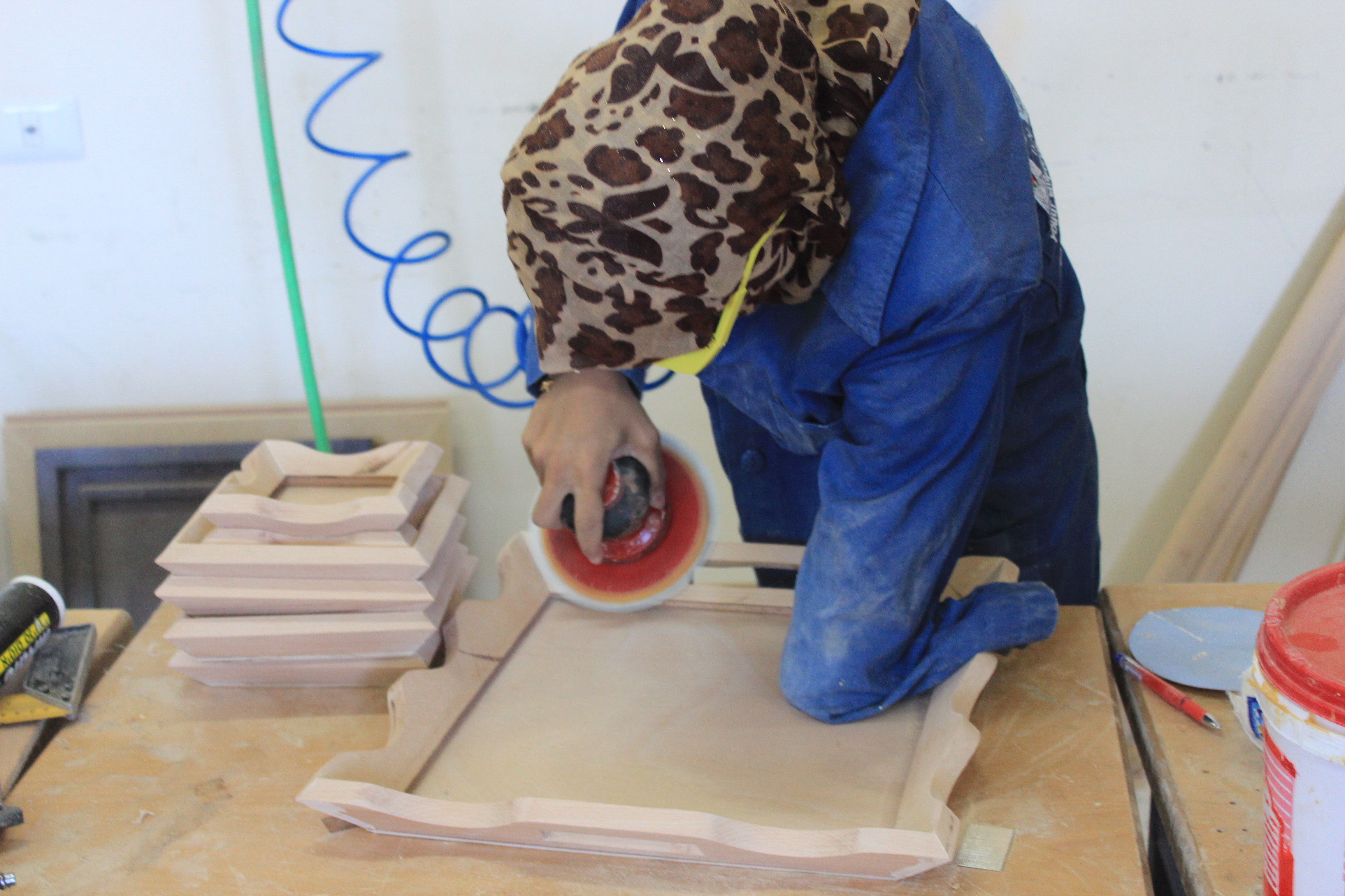 كانت اسراء من ذوات الإعاقة اللاتي تم اختيارهن للاستفادة من مشروع “خلق فرص عمل للأشخاص ذوي الإعاقة” الذي يتم تنفيذه بتمويل من صندوق الأوبك للتنمية الدولية وبإشراف برنامج الأمم المتحدة الإنمائي UNDP. التحقت اسراء للتدريب في مجال الحفر على الخشب اليدوي حيث تعلمت كيفية التشطيب الخشبي للمطرزات من صواني وصناديق وغيرها من المنتجات، إضافة لإنتاج الهدايا الخشبية المختلفة. وعن تجربتها بإرادة تقول اسراء :” أشعر بالفخر عندما أنجز المهمة المطلوبة مني في الورشة، وأشعر بسعادة عندما يقول لي مدربي بأني أحسنت صنعاً.”