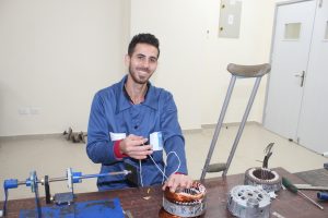 يقول أحمد: “حزنت بعد الاصابة، لأني لم أستطع العمل في دهان السيارات مثل السابق كونها تتطلب الحركة”. ويتابع: “سمعت عن التدريب في مركز إرادة، فاعتبرتها فرصة لتعلم مهنة جديدة، واخترت تخصص لف المحولات والمحركات الكهربائية لأن مجال شغلها جيد، ومناسبة لحالتي الصحية”