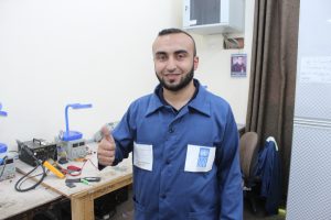 نور ذوو الخمسة والعشرون عاماً لم يستسلم للواقع، فرغماً من إعاقته الحركية الناتجة عن بتر قدمه اليسرى والظروف الصعبة في قطاع غزة، إلا أن نور كان لديه ثقة عالية بنفسه وإصرار على النجاح. يقول نور: “أنا أثق بأن لدي القدرة على النجاح بأي مجال وأثبت نفسي”، ويستكمل حديثه ” بعد أن أصبح واضحاً لي بأني لن أحصل على فرصة عمل في مجال الصحافة، بدأت أفكر بتعلم مهنة جديدة فأنا لدي حب للتعلم، وعند إعلان مركز إرادة عن فرصة تدريب في مجال صيانة الجوال والأجهزة الذكية سجلت مباشرة واجتزت المقابلة”.